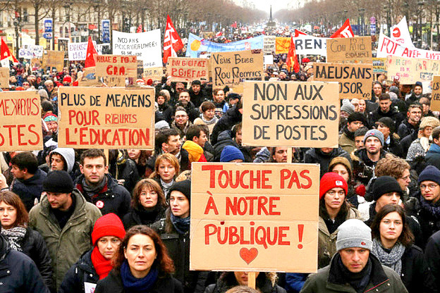 French workers strike against 44bn euro budget cuts!